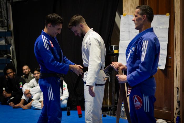 With Vinicius 'Draculino' Magalhães as senior co-promoter. My professor Duane van Helvoirt and 5 other blackbelts present.