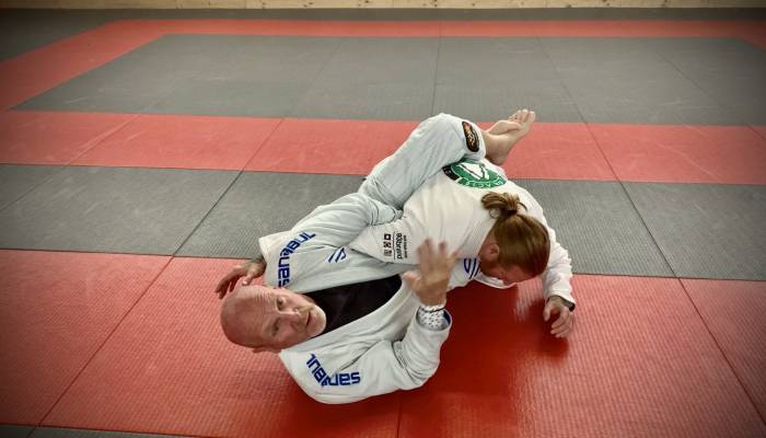 2023, Learning from Greg Thompson blackbelt, Lee King from West End/ North Carolina (Greg Thompson from Team ROC was one of Royce Gracie’s first blackbelts)