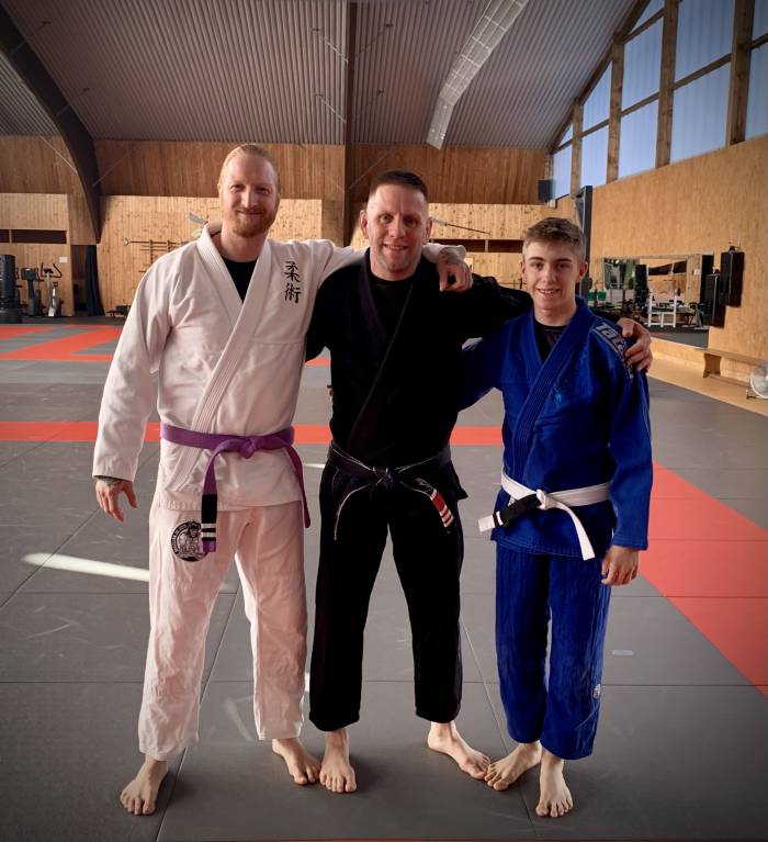 2023, With my friend, 2nd degree BJJ Blackbelt Mark Picton from Mansfield/ UK, with his son Tyler, at our place. I learned a lot from Mark and my BJJ is influenced positively by him in a big way!