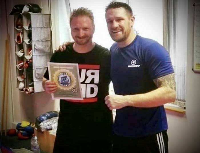 | Got „blue gloves“ certified in the CMD Boxing System by Muay Thai, Boxing and BJJ Coach Eric Kolesar from Everett Washington at a 3 days boxing clinic after sparring | ![]() |
