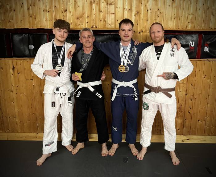 2017, Visiting my friend, BJJ Blackbelt Mark Picton and his Coach, Professor Paul Cole, at 5 rings grappling Mansfield/UK, with 2 of my training partners