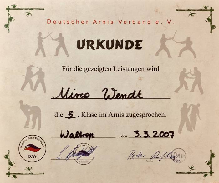| First belt exam in Filipino martial arts „Arnis“ with Guro Hans Peter Arto | ![]() |