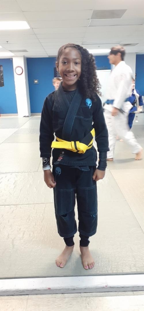 Sydnei received her yellow belt April 7, 2018 and then rec'd her yellow/black January 18, 2020