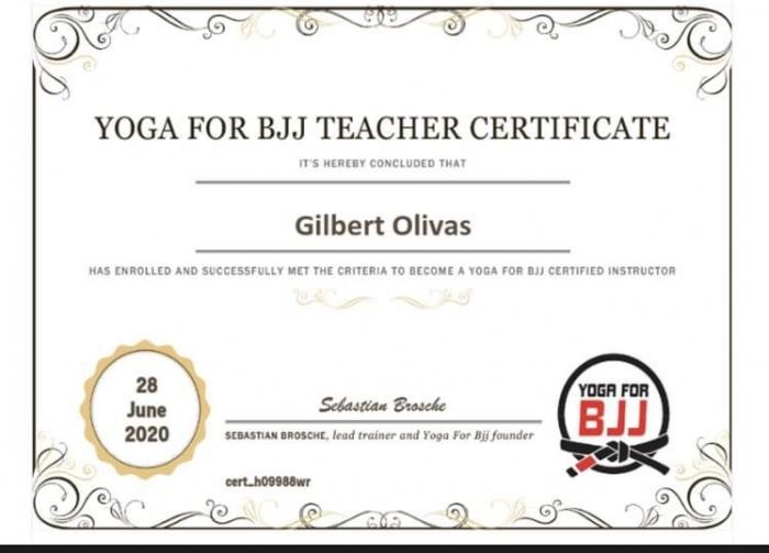 Certificates: USBJJF, YTT 200, Yoga for BJJ, IBJJF, 2nd Degree BJJ Black Belt, Scientific Wrestling, Snake Pit USA, Judo Shodan, SAW Black Belt.