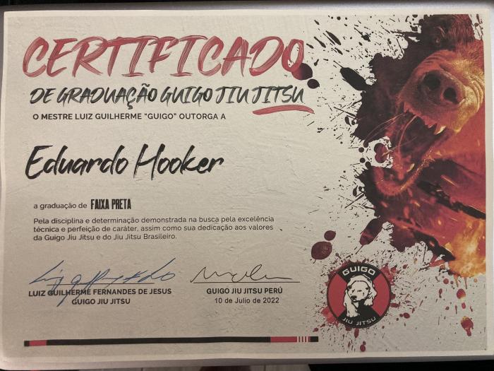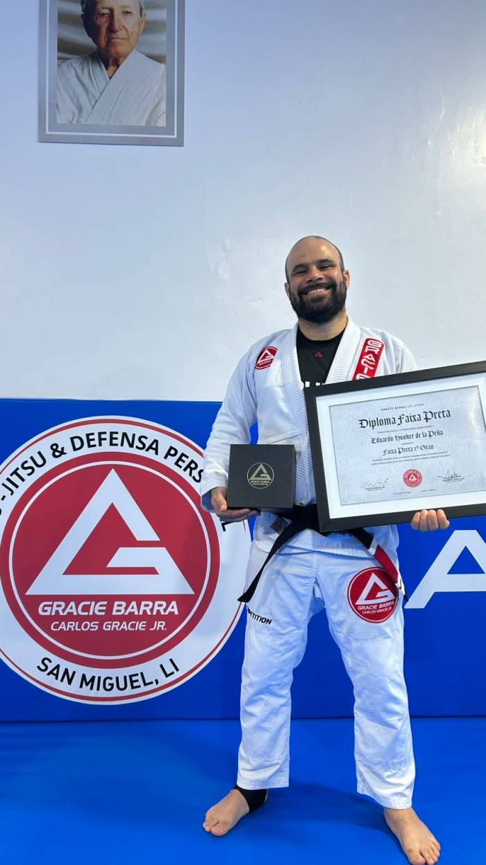 1993, I was 10 years old and saw Royce defeat larger and stronger oponents, in that very day I knew that I wanted to train whatever he was doing. 17 years later I realized that there was a Jiu Jitsu movement going around in Perú with some well trained guys and I start looking for what I always wanted. I start training in 2010, one week before my fist daughter was born and since then, I never stop. I train under the Gracie Academy curriculum for about 3 years, having the chance to travel to California and complete their Instructor Certification Program. I train about a couple years in the Renzo Graicie Academy here in Lima-Perú. In 2015 I joined Guigo Jiu JItsu team and start training under the wings of Marlon "Caveira" Ribeiro as a blue belt and have recieve from him all my belts until the Black Belt. In 2025 I joined the GRACIE BARRA team under Professor Andres Legallais and started head coaching Gracie Barra San Miguel.