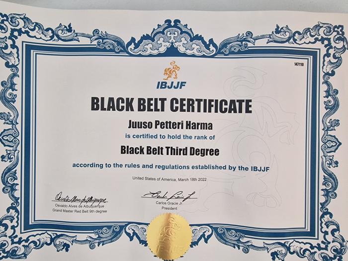 Ibjjf 3rd degree black belt cert