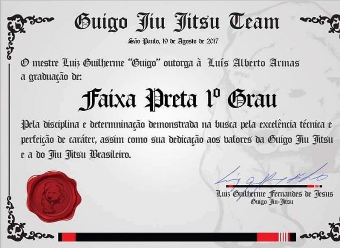 Guigo Jiu Jitsu team. Mestre Luiz Guilherme Guigo --> Marlon Ribeiro Black belt.