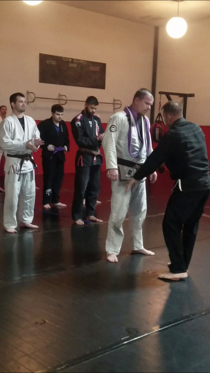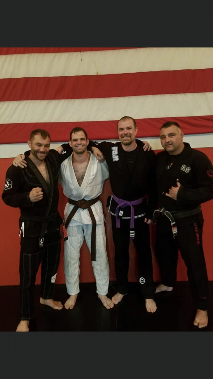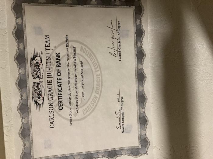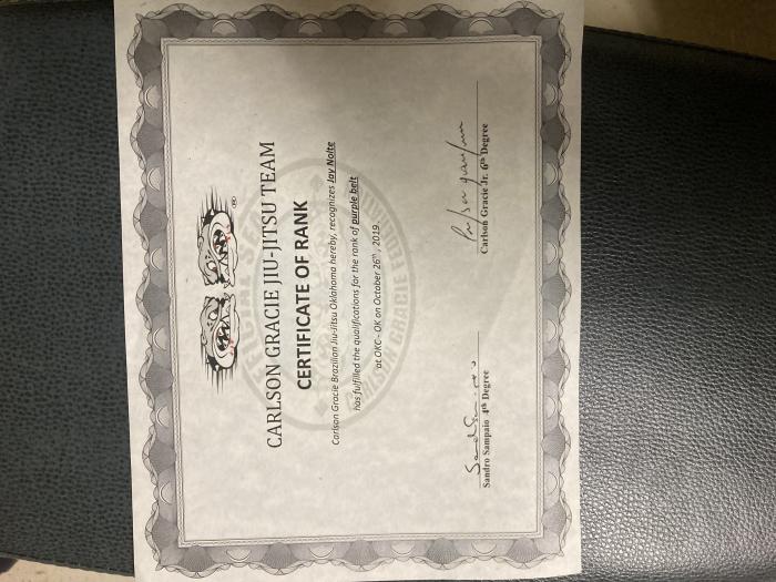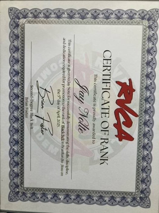 "Picture of promotion with certificate. Congrats on the black belt, Jay 💪 "