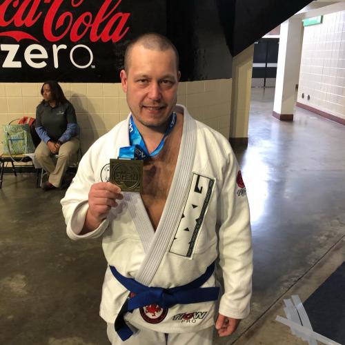 "Picture of him getting blue belt "