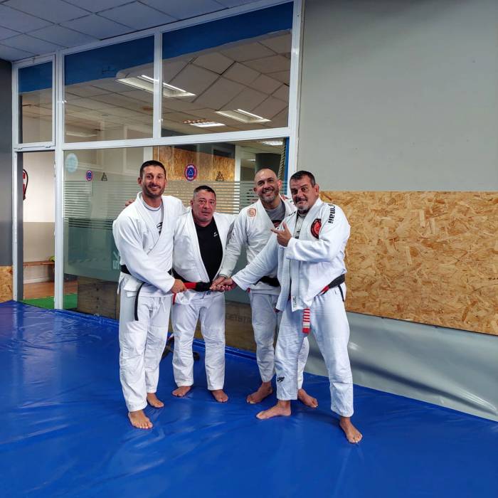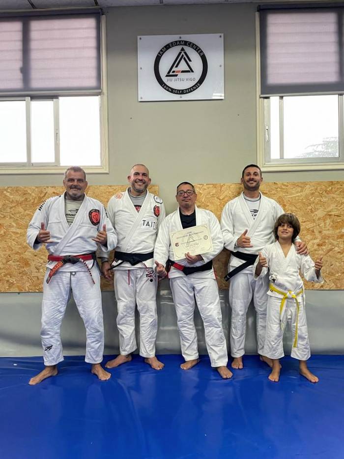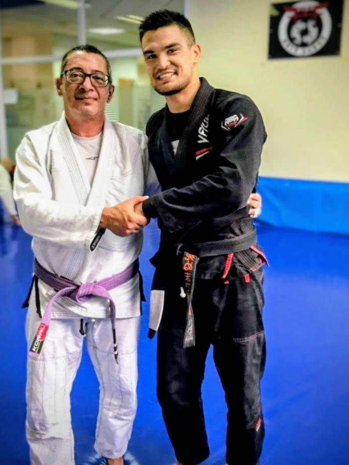 Receiving the black belt from the hands of Sergio "Malibu" Jardim