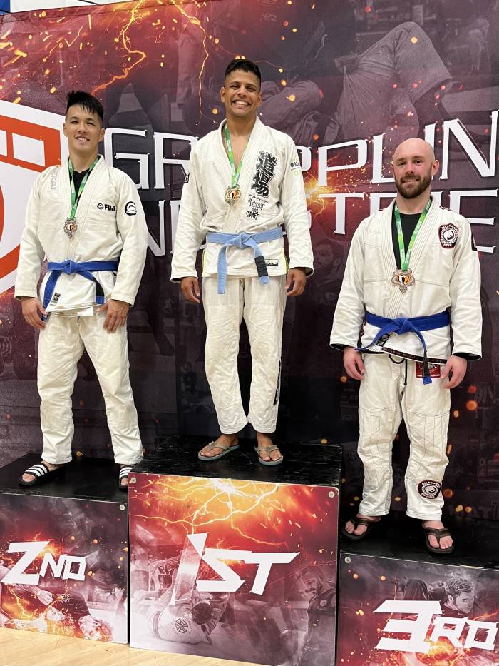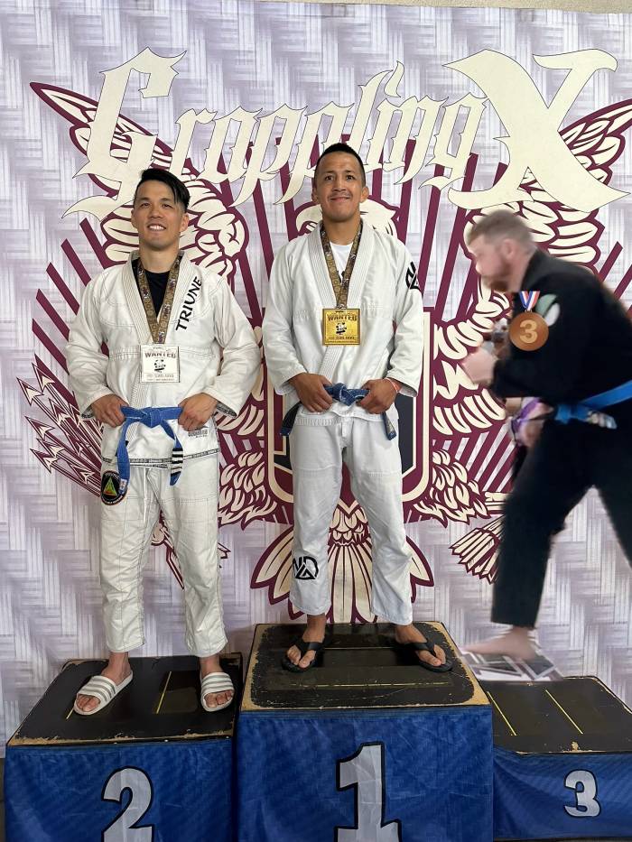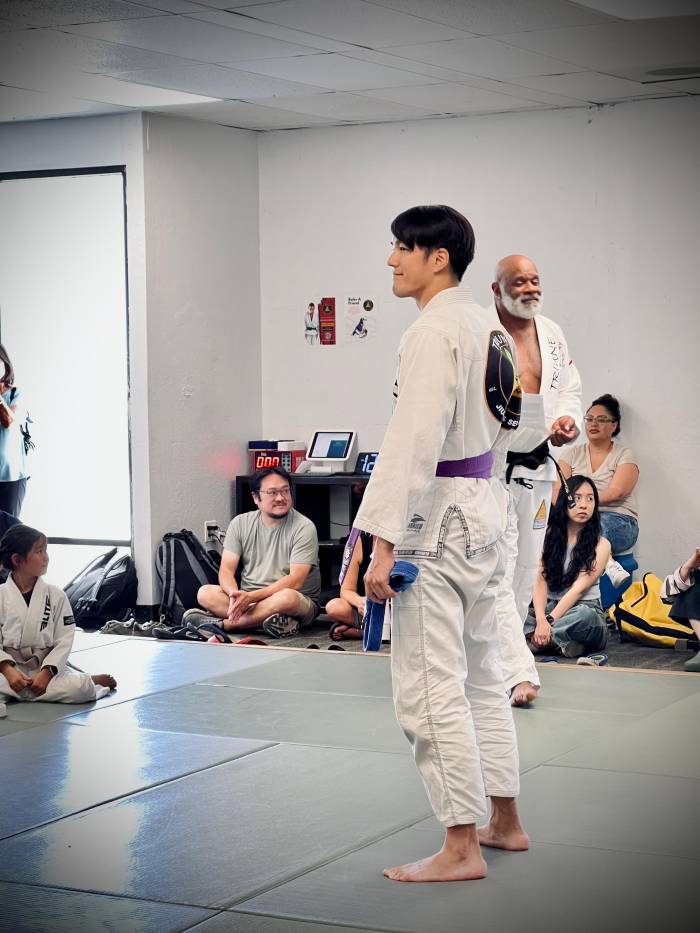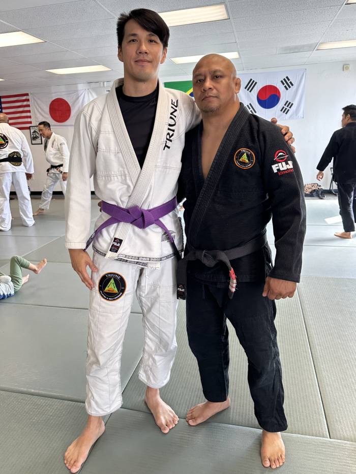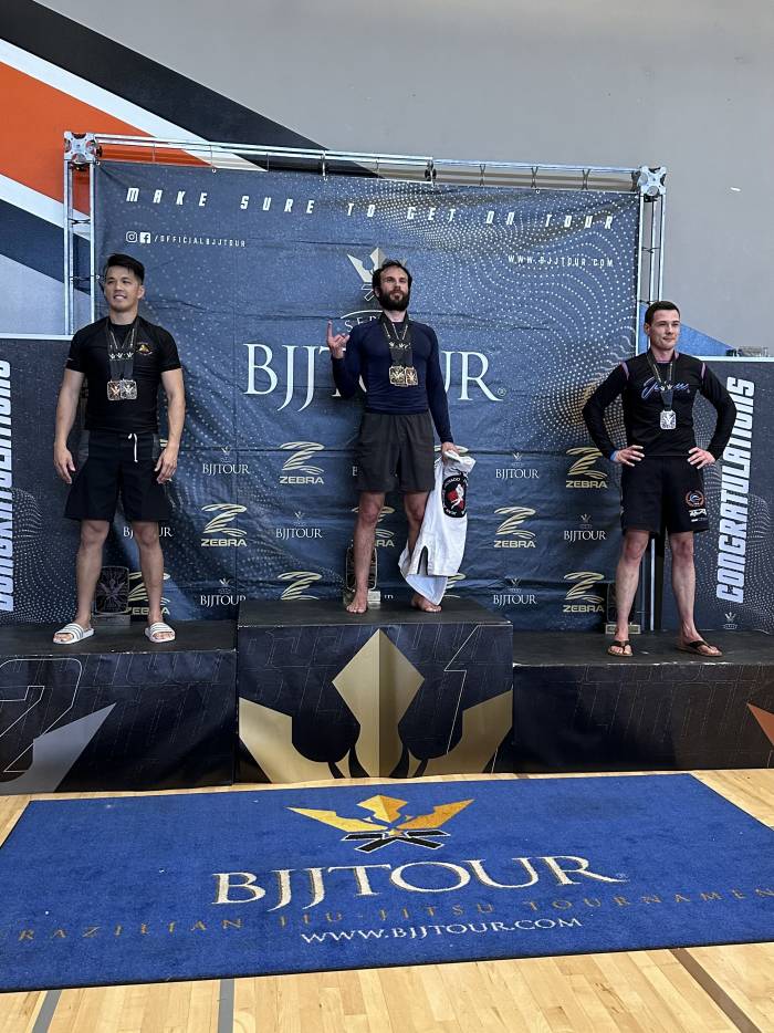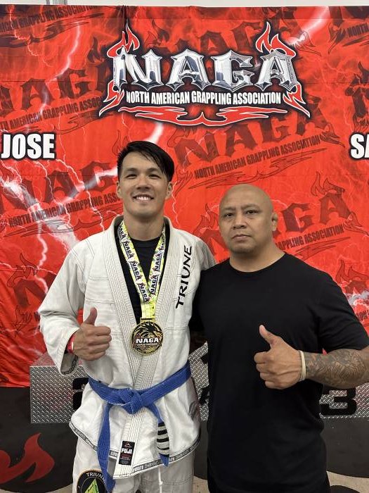 I received my blue belt from Professor Paul Tom at a Flavio Behring Seminar. When COVID-19 hit I was out of training for about 7 months. I moved to Monterey, CA for work, and then started training at Elite Team Monterey under Mark Gutierrez from 2020-2022. I would eventually find a permanent academy at Triune BJJ in Santa Clara, where I trained under Professor Josh Doctolero. I would earn my stripes from Professor Josh in 2022 and 2024.