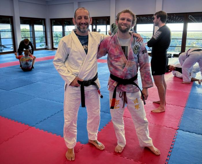 My first roll as a black belt with Francesco Fonte, at Zen Camp 2024