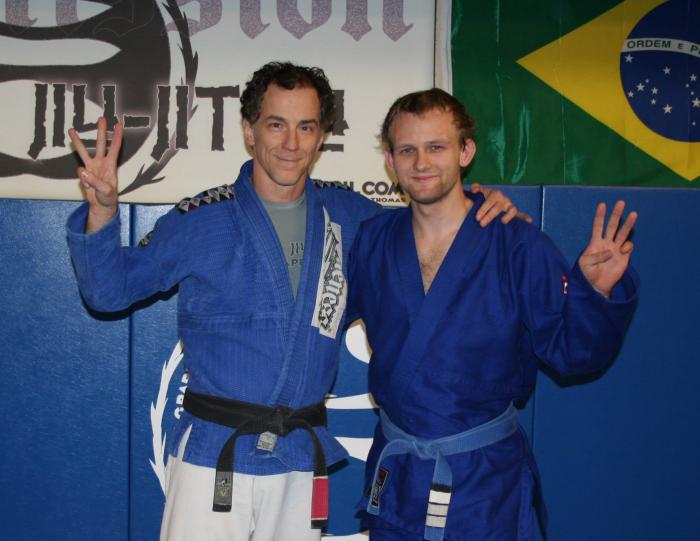 Ben Williams dragged me along sometime in early 2006, when I was in high school; I can't remember how I finally calculated this exact date, hard before the era of smartphones. I know he got his blue belt on my first day. I trained for 6 months, then 6 months later for 1 month, and then didn't really train for another 6 or 7 years. This pic of me is sometime between 2009 and 2011, wearing my original gi for halloween. I was technically a white belt at the time of photo, only picture of me as a white belt in a gi in existence I think.