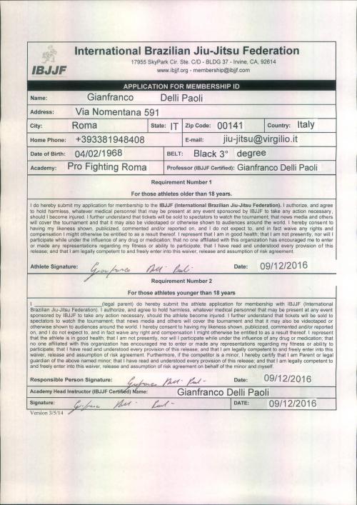 "I know Gianfranco Delli Paoli by manu years. He Is One of the best masters of bjj in Italy"
