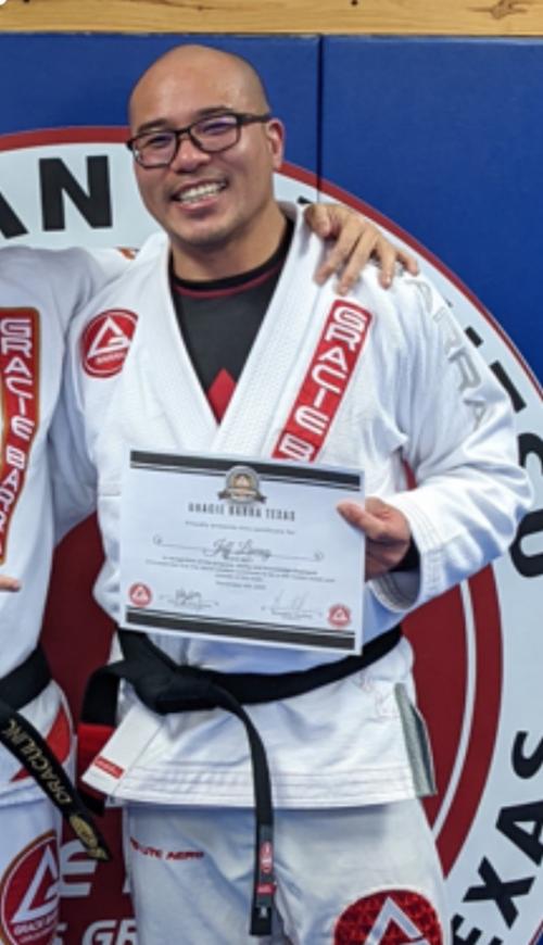 6th degree Black Belt and member of the dirty dozen (the first 12 non-Brazilian black belts). Chris was the first American to submit a Brazilian in competition, the first American to compete as a black belt at the Mundials in Brazil and he continues to travel the world spreading his Jiu Jitsu philosophy of think street, train sport and practice art. He is also known for his golden rules of grappling, coining the term combat base as the base with one knee up and one knee down, and saying, "It is not about who is good, but who is left. It's time on the mat. You will be somewhere in ten years, you might as well be a black belt too. Just don't quit."