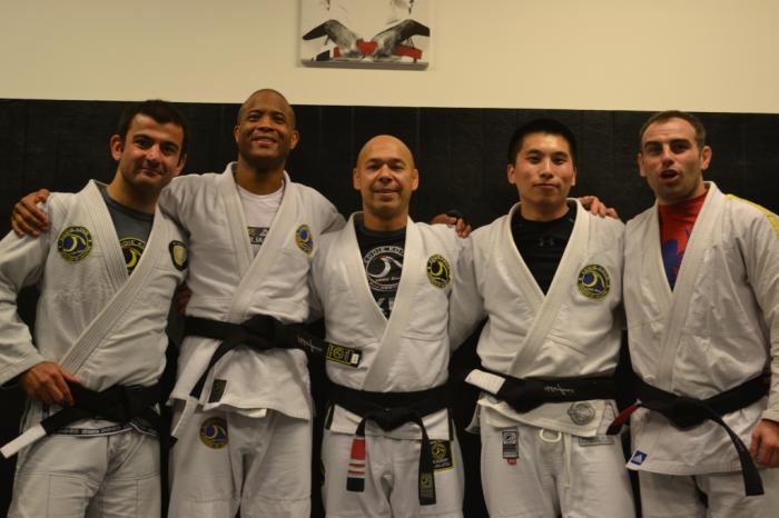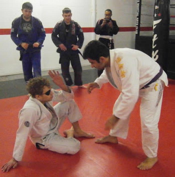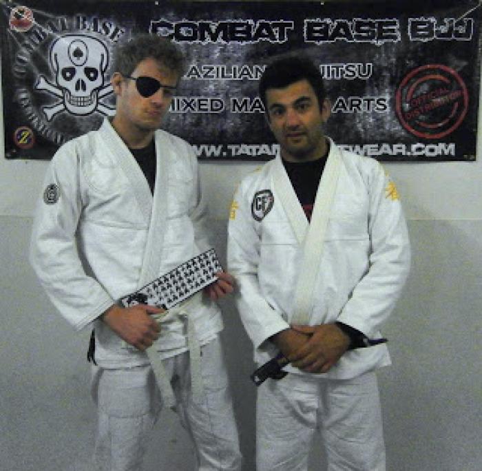 My first meeting with a Jiujitsu black belt: Mr Roy Harris. Wearing my karate blue belt and a judo jacket I had borrowed. (2003?)